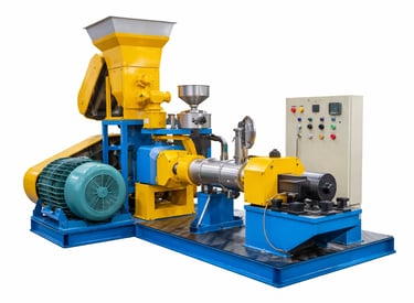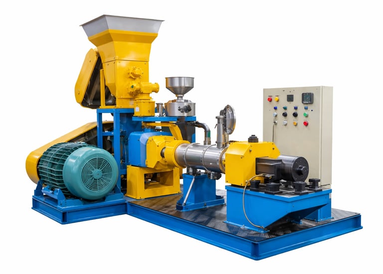 It is an industrial machine used to produce nutritious fish feed pellets efficiently for aquaculture and fish farming operations
