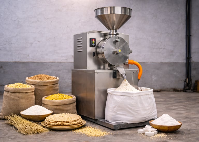 It is a powerful grinding machine used to mill wheat and other grains into fresh, high-quality flour efficiently.
